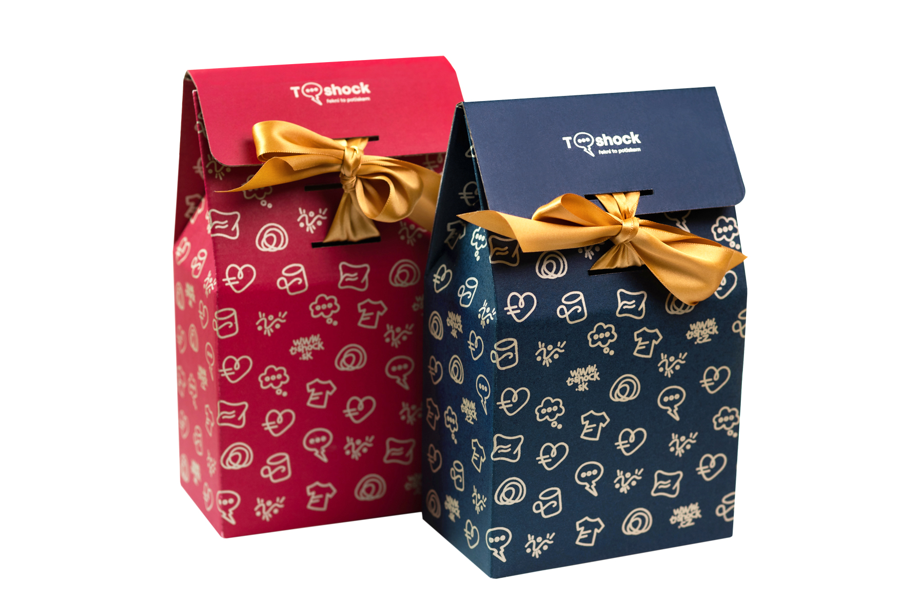 Hľadáte neobyčajné a praktické balenie darčekov? Vyriešte boj s baliacim papierom a zabaľte viac darčekov do jednej darčekové tašky, ktorú potom len zavriete a zaviažete zlatou saténovou mašľou. Každú darčekovú krabičku balíme vždy ešte do väčšej expedičnej krabice, takže ju nič nepoškodí. Do krabičky sa zmestia rôzne kombinácie darčekov s vlastnou potlačou ako napríklad tričko, plecháčik, prívesok alebo funkčné tričko, fľaša na pitie a nákrčník. Tvorte a vyberajte z nášho e-shopu, fantázii sa medze nekladú!